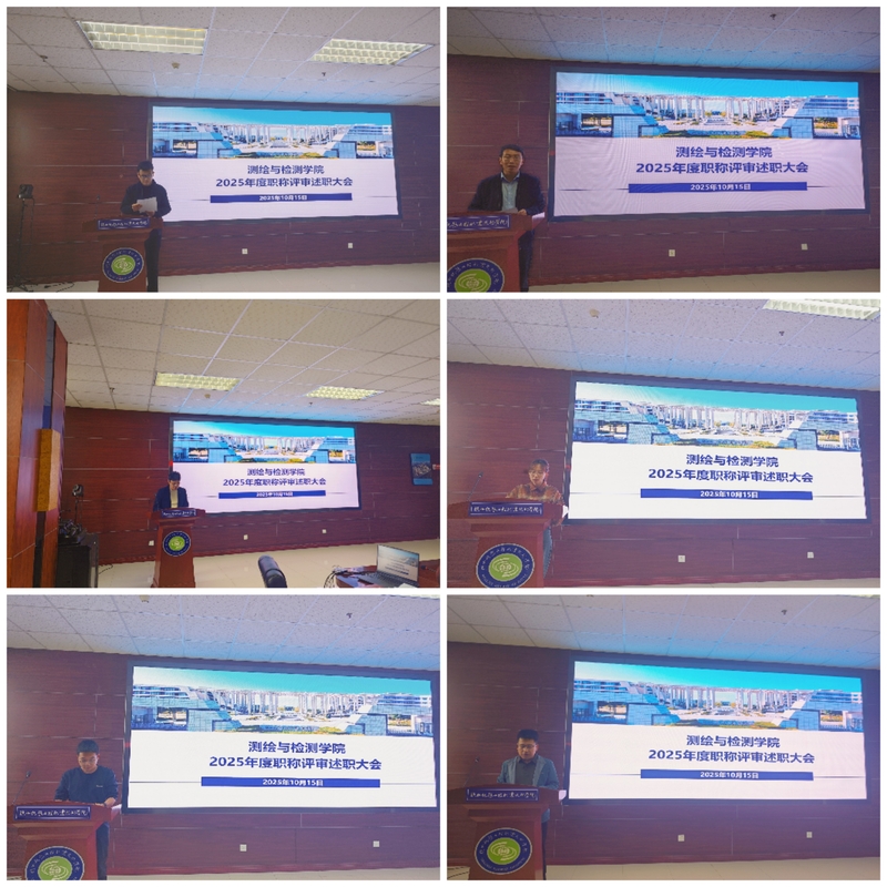 10月15日下午,测绘与检测学院在北三楼会议室召开了2025年度职称评审述职大会,全院教职工参会。