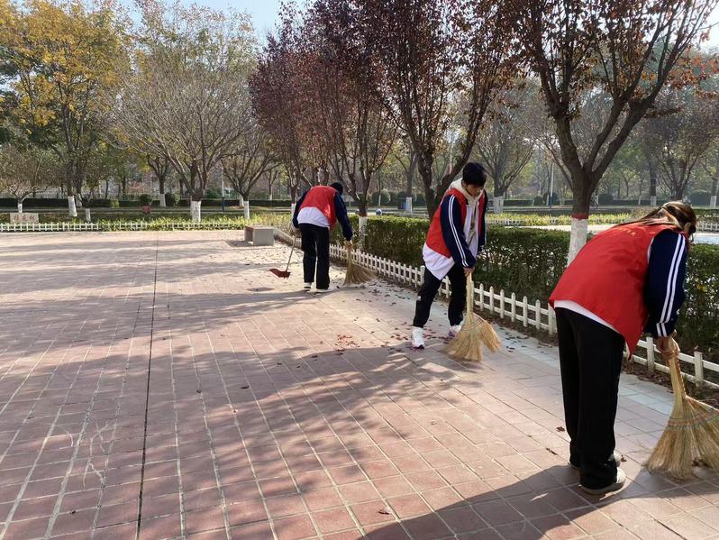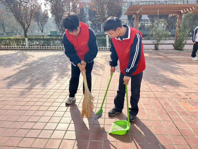 活动当天,志愿者们身着统一服装,扫帚划过水泥路面的沙沙声,是校园最早的晨曲。同学们握着扫帚,弯腰清扫落叶与纸屑,汗水浸湿额发,却让跑道更洁净、花坛更清爽。每一片被扫起的垃圾,都藏着对校园的热爱——这方被精心打理的天地,正以崭新的模样,迎接琅琅书声与青春脚步。劳动过程中,同学们不怕脏、不怕累,相互协作、分工明确,展现出当代大学生吃苦耐劳的优良作风和团结奋进的精神风貌。“看着自己打扫后的区域变得干净整洁,真切感受到劳动带来的成就感,也更理解了志愿服务的意义。