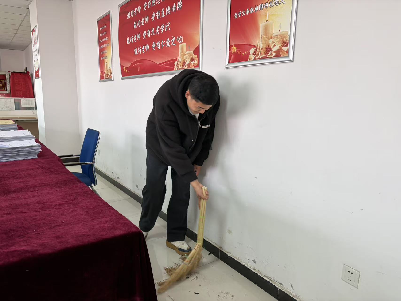 为弘扬志愿服务精神,传递对教师的感恩之情,12月10日下午,学院组织志愿者开展教师办公室清扫公益活动。活动中,志愿者们分工明确、干劲十足,认真擦拭办公桌、门窗、书架等设施,细致清理地面杂物与卫生死角,将办公物品摆放整齐。大家不怕脏、不怕累,用双手为老师们营造了干净、整洁、舒适的办公环境,用实际行动诠释了新时代青年的责任与担当。此次活动不仅改善了教师办公环境,更增进了师生间的情感联结,引导学生学会感恩、乐于奉献,推动校园文明新风尚的形成。(王杰)