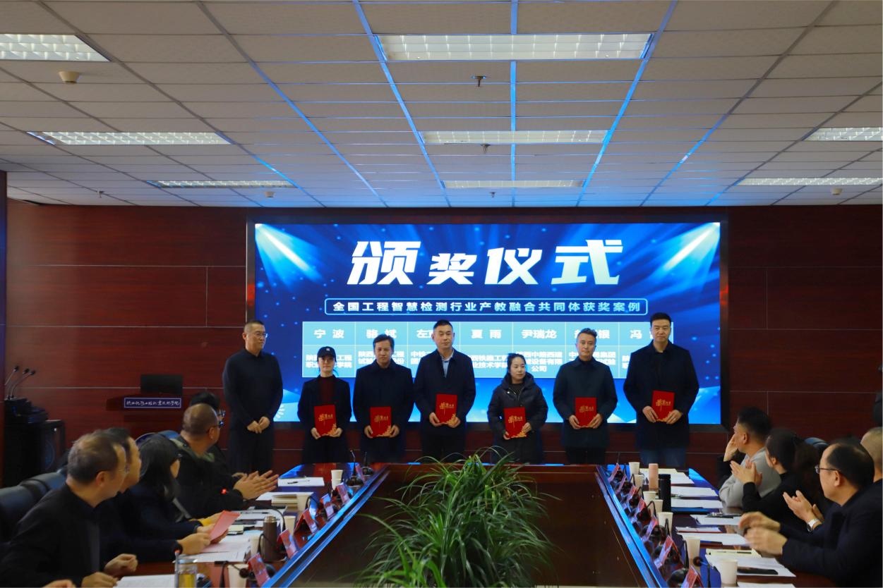 第二阶段,由副校长贺建峰同志主持。会上共同体理事长单位中铁一局集团有限公司惠海涛同志代表共同体发布了2025年全国工程智慧检测行业产教融合共同体年度工作报告。
